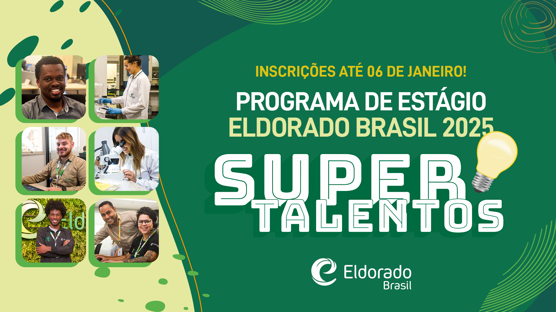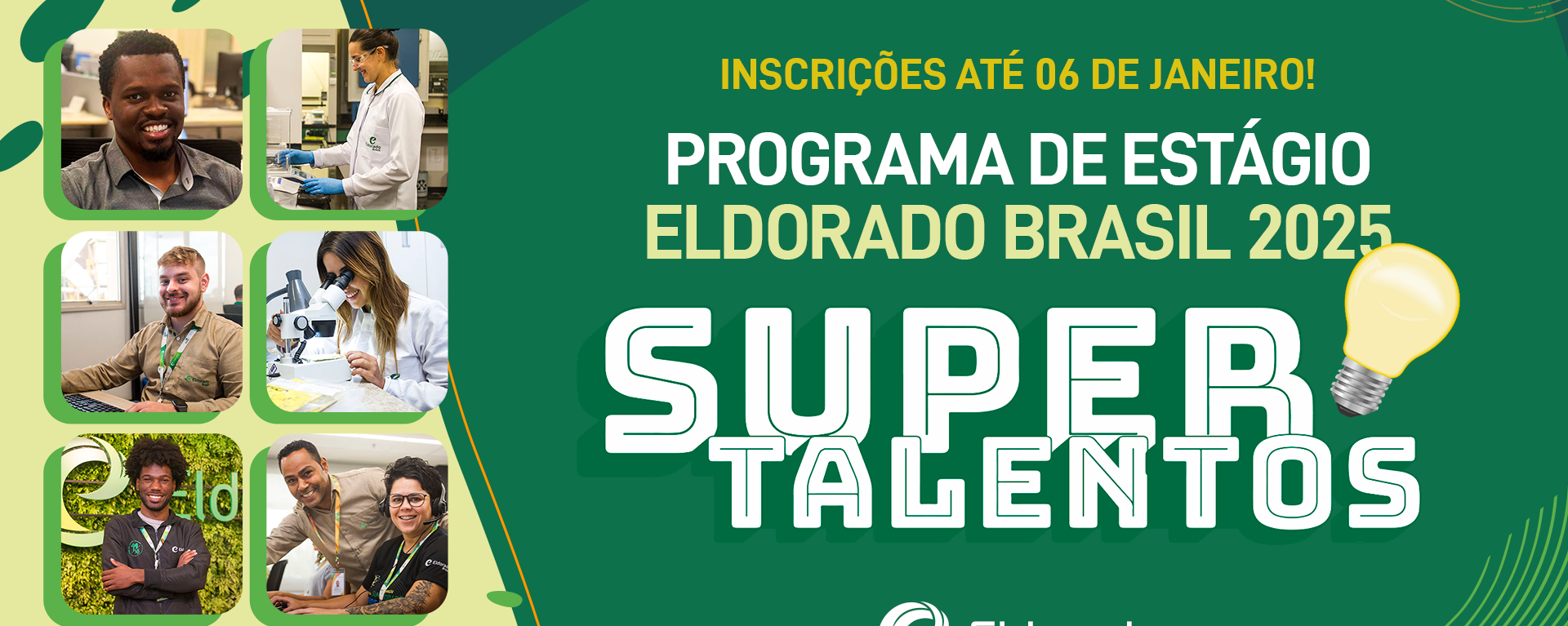 As inscrições podem ser feitas até 6 de janeiro de 2025 pelo site oficial da Eldorado Brasil: HTTPS://SUPERTALENTOSELDORADO.GUPY.IO/